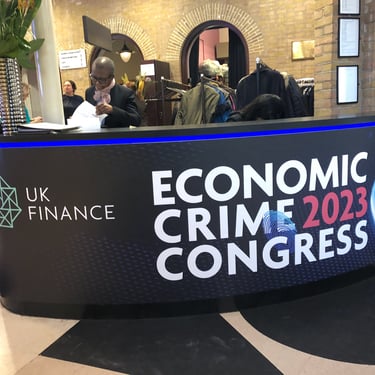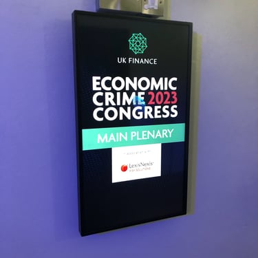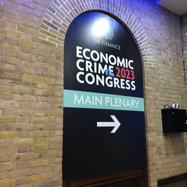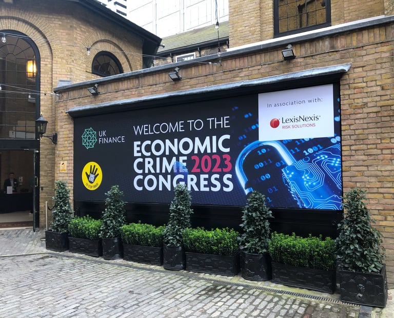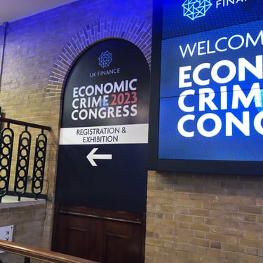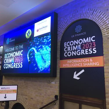 The Economic Crime Congress (ECC) 2023 presented a complex design challenge at The Brewery in London. The multi-room, multi-floor venue required a comprehensive visual identity system that would: